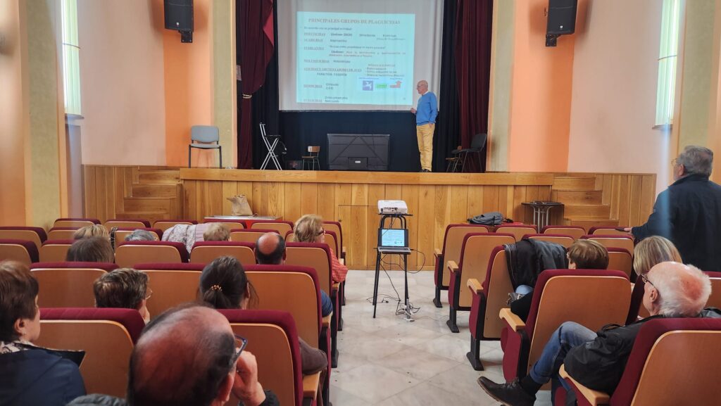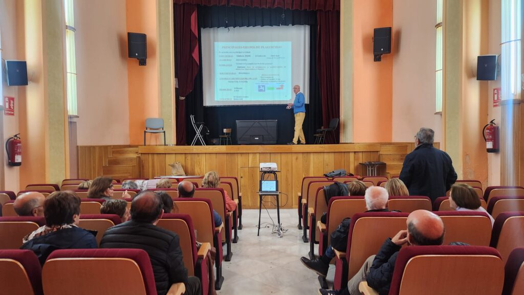 El profesor comenzó explicando que los plaguicidas, también llamados fitosanitarios, son productos químicos diseñados para proteger los cultivos de insectos, hongos, malas hierbas o roedores, y que, utilizados correctamente, contribuyen a un mayor rendimiento agrícola. Sin embargo, señaló, su eficacia debe equilibrarse con la seguridad para las personas, los animales y la flora útil del entorno. Se presentan bajo diversas formas: polvos, granulados, líquidos emulsionables o aerosoles, adaptados según el tipo de aplicación.